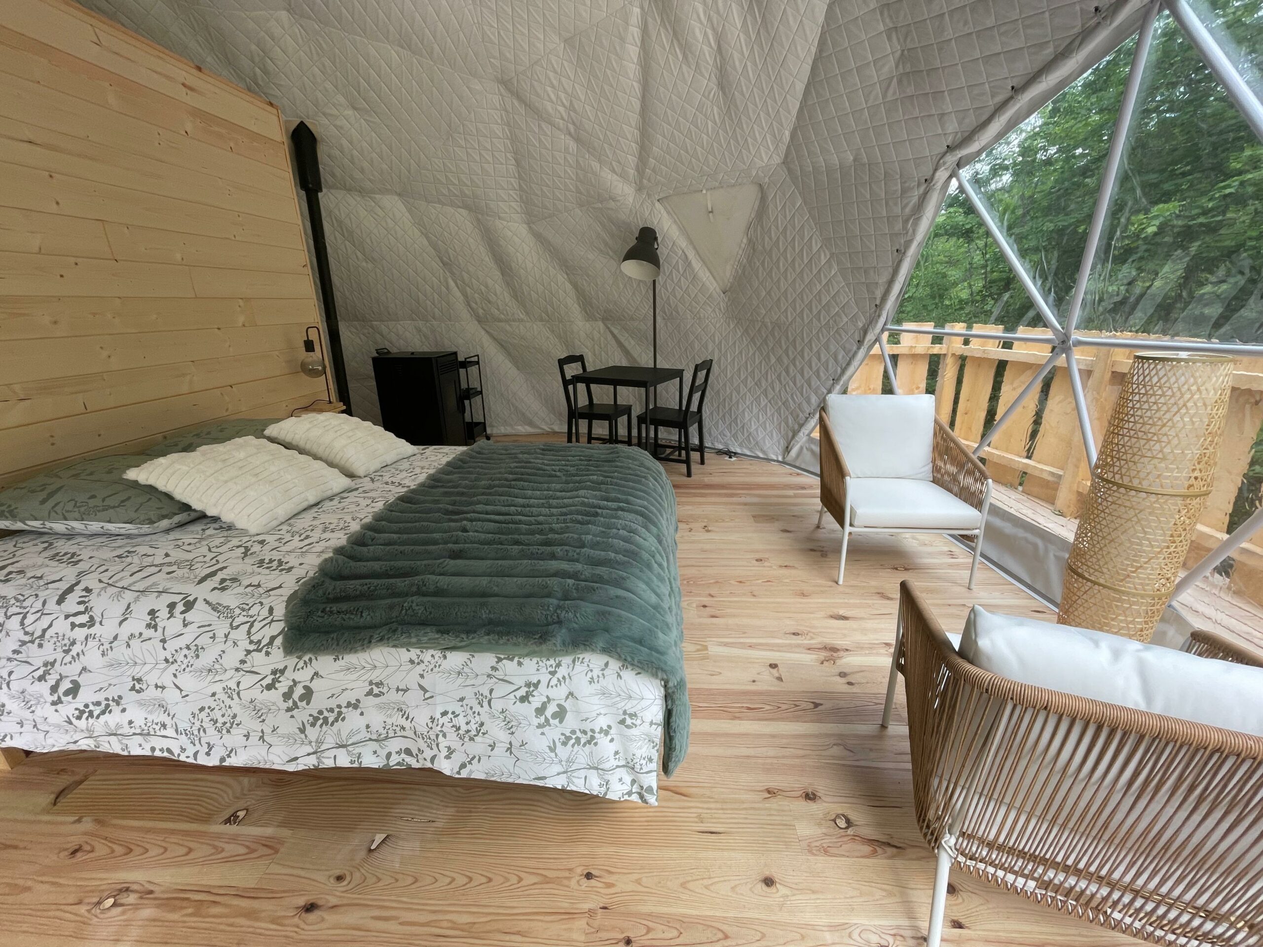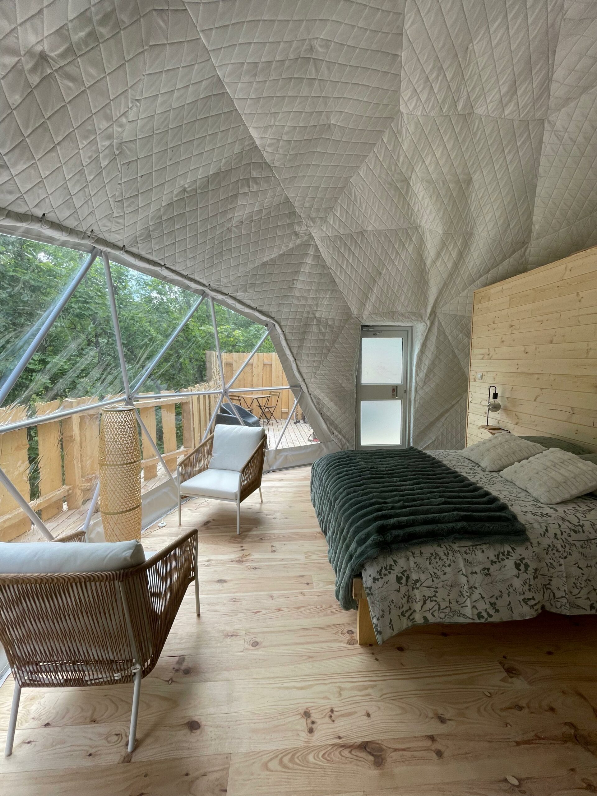 Le dôme est équipé de sanitaires privés, avec une douche et des toilettes sèches, pour allier confort et respect de l’environnement.
